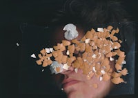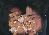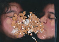 Scanography of brown eggshells and face pressed against glass. This series was made in response to the coerced sterilization happening in ICE detainment camps. As well as the disproportionate amount of brown death suffered from Covid-19.